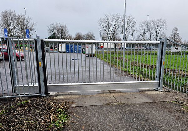 We hebben de bestaande slagboom vervangen door een FAAC B680H met een mast van 10 meter. Dankzij de hydraulische aandrijving is deze installatie probleemloos geschikt voor hoge gebruiksfrequentie en het extra gewicht/lengte van de mast. Voor zichtbaarheid en veiligheid is de slagboom uitgevoerd met LED-verlichting (kast en mast) en ingeregeld met de benodigde beveiligingen (zoals fotocellen en – indien gewenst – detectielussen). Zo is de toegang ook in het donker duidelijk, snel en bedrijfszeker.