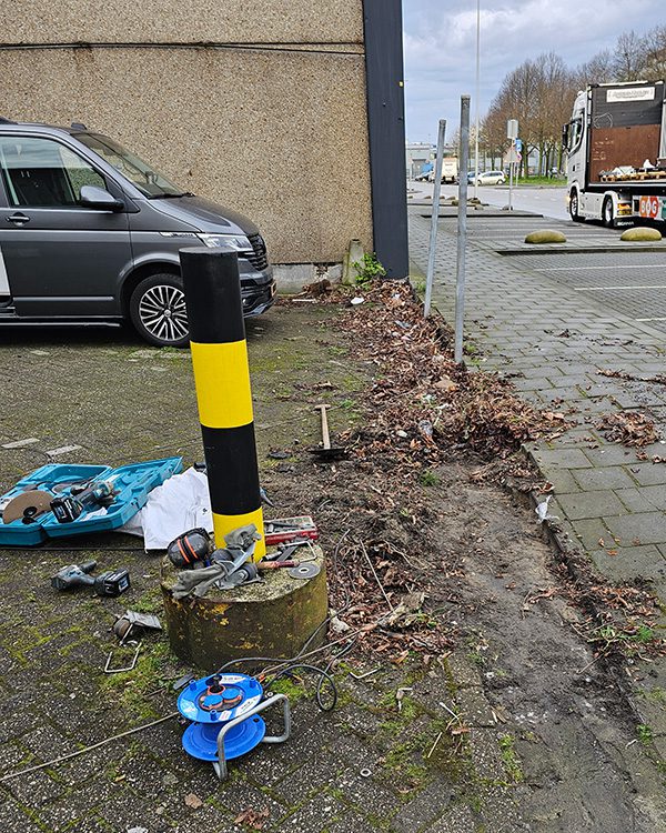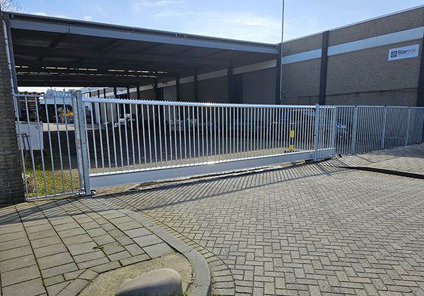 Na aanrijdingsschade door een vrachtwagen hebben we de handbediende schuifpoort vervangen door een nieuwe aluminium schuifpoort, inclusief aansluitend hekwerk in dezelfde stijl. De poort is geplaatst op nieuwe fundaties. Dankzij de corrosiebestendige aluminium en het onderhoudsarme ontwerp is de toegang weer strak, duurzaam en representatief — desgewenst voorbereid op automatisering.