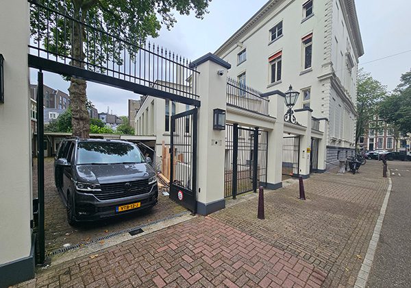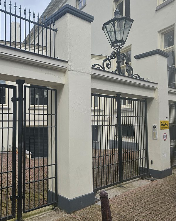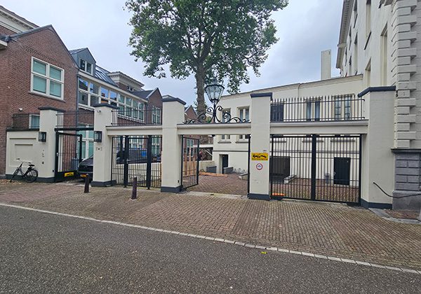 Bij het monumentale pand aan het Molenpad in Amsterdam hebben we groot onderhoud uitgevoerd aan de twee dubbele draaipoorten. De bestaande ondergrondse bakken waren doorgeroest en zijn vervangen door nieuwe RVS-bakken, wat de duurzaamheid en betrouwbaarheid van de poorten aanzienlijk verbetert. Daarnaast hebben we de poorten uitgerust met een detectielus die fungeert als extra veiligheidsmaatregel en het vrij uitrijden mogelijk maakt.
