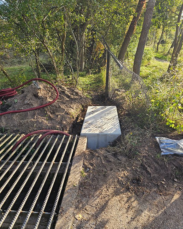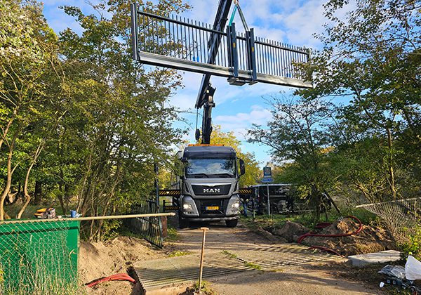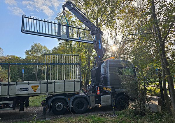 Prefab fundatieblok: Om aan de eis van de klant te voldoen om de poort binnen één dag te vervangen, is de poort geplaatst met een prefab fundatieblok, wat de installatie versnelt.