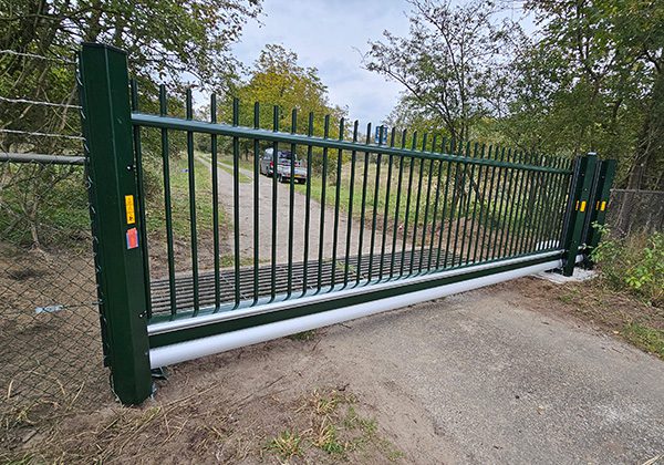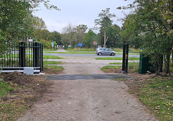 In Overveen hebben we een dubbele draaipoort vervangen door een nieuwe elektrische schuifpoort met snelle aandrijving. Deze poort bevindt zich op een calamiteitenroute voor de hulpdiensten en is daarom uitgerust met het SOS Toegangssysteem. Dit systeem stelt hulpdiensten in staat om met één druk op de knop snel toegang te krijgen tot de duinen in Overveen.